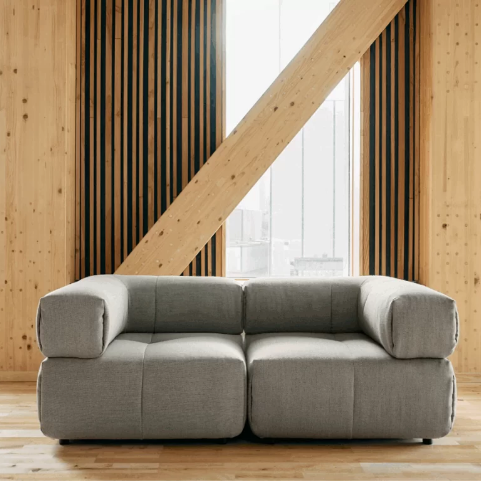 Biggie được thiết kế một cách hiện đại, không sử dụng mút xốp hay khóa dán velcro. Với 92.57% vật liệu tái chế, bao gồm sợi gỗ tái chế và 80% sợi PES tái chế. Biggie dễ dàng tháo rời, bền bỉ và được thiết kế để tái chế. Một thiết kế thông minh, thoải mái nhờ lò xo thép — sẵn sàng để tồn tại lâu dài.