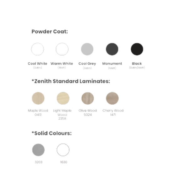 - Khung, chân & vỏ bọc: Lớp sơn tĩnh điện tiêu chuẩn của Zenith