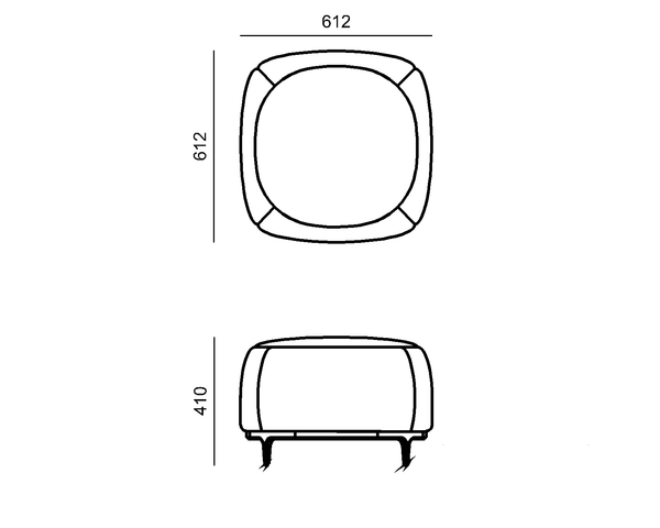 Pouf: 612mm (chiều Rộng) x 612mm (chiều Sâu) x 410mm (chiều Cao).
